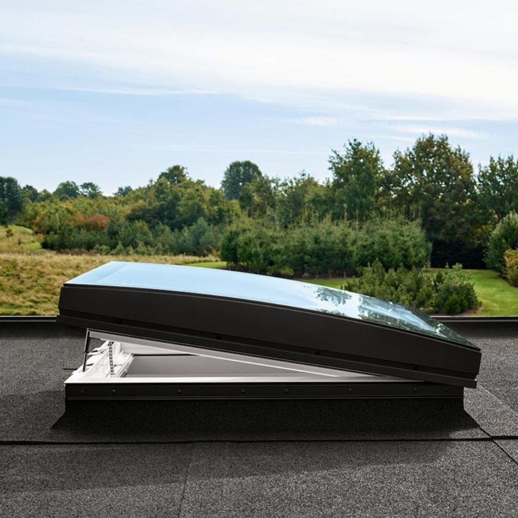 Ce fenêtre de toit plat avec verre courbé est idéale pour les propriétaires soucieux du design de leur habitation. Le verre courbé facilite l’entretien, garantit le ruissellement de la pluie et assure une entrée de lumière optimale. Le double vitrage super isolant et le verre courbé de protection donnent une excellente valeur d’isolation de l’ensemble. Le verre de protection courbé anti-rayures est facile d’entretien.