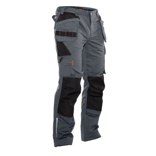 Polyester/coton facile à entretenir, sans se délaver ni perdre sa forme. Poches étuis flottantes avec compartiment supplémentaire et poches supplémentaires zippées. Poche au dos à rabat et fermeture Velcro®. Poche sur la jambe avec compartiment supplémentaire et rabat à fermeture Velcro®. Poche pour mètre avec compartiment couteau. Poches étui et poches genouillères renforcées. En stock dans les tailles 44 – 56.