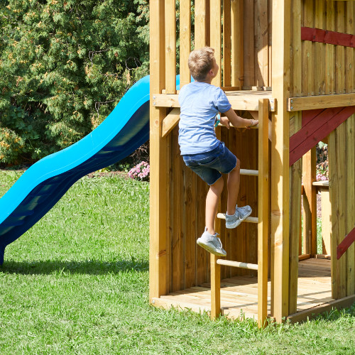 L’échelle WINNETOO est en bois résineux FSC®. Ses 4 barreaux sont en bois dur d’un diamètre de 35 mm. Pour la fixation dans le sol, prévoir une poutre de système supplémentaire. Dimensions 40 x 150 cm.