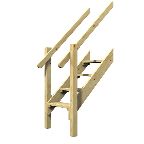 Escalier en bois à fixer à la tour Giga et Play. Deux poutres de système supplémentaires sont nécessaires pour le montage et deux ancrages au sol Safety Plus pour la fixation dans le sol.