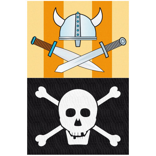 Le kit WINNETOO de drapeaux BOYS en toile polyester pour bien flotter au vent offre deux super motifs: wiking et pirate.